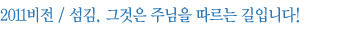 2011³â »õÇØ¿¡´Â ÁÖ´ÔÀÇ ¸»¾¸¿¡ ¹¬¹¬È÷ ¼øÁ¾ÇÏ¸ç ¼¶±èÀÇ »îÀ» ÅëÇØ ÁÖ´ÔÀ» ¿ÂÀüÈ÷ µû¶ó°¡´Â ±³È¸¿Í